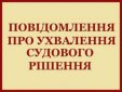 Повідомлення Кульчицькій Оксані Сергіївні (останнє відоме місце проживання: вул. Сагайдачного, 2 м. Морнастирище Уманський район Черкаська область) про ухвалення відповідного судового рішення у справі № 702/80/26
